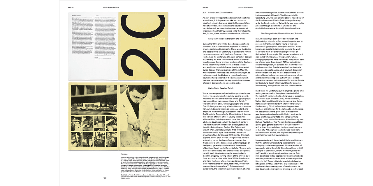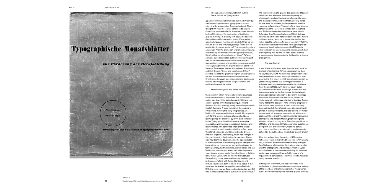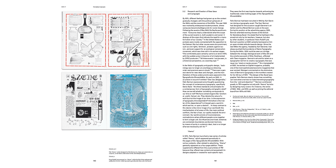 30 Years of Swiss Typographic Discourse in the Typografische Monatsblätter provides a condensed overview of the period between 1960 and 1990, an era of transition. In the second half of the 20th century factors such as technology, socio-political contexts, and aesthetic ideologies profoundly affected and transformed visual language.