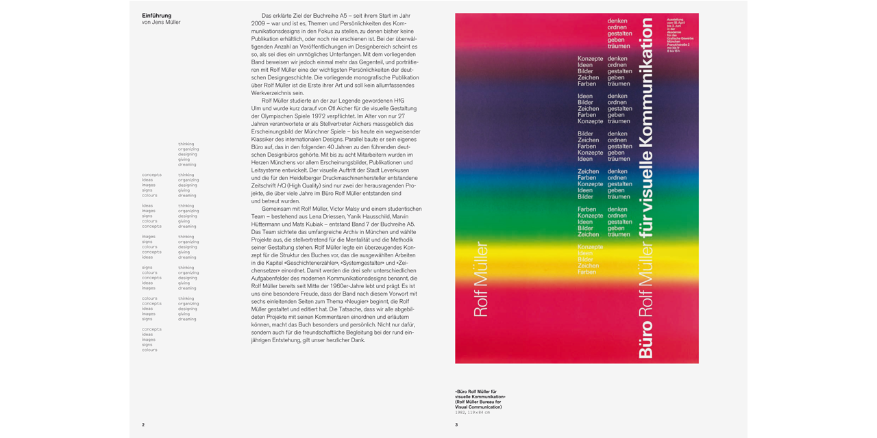 This book is the first monograph dedicated to the designer Rolf Müller who is known above all for his design of the visual identity of the Munich Olympic Games in 1972. Shortly after graduating from the famous Ulm School of Design, Müller's former professor Otl Aicher entrusted him with this work, which set new standards in international design. At the same time, Müller established his own design firm Büro Rolf Müller in Munich. On the basis of selected projects, this book attempts to sketch the mentality and methods of Rolf Müller's design. For nearly four decades, his firm developed corporate identities, books, magazines and signage systems on the highest level, including the visual identity of the City of Leverkusen and the magazine HQ High Quality for the company Heidelberger Druckmaschinen. As a storyteller and system designer, Rolf Müller has left his mark on international design history with his work. His stance has had a decisive impact in shaping the way in which today’s communications designers view their profession.