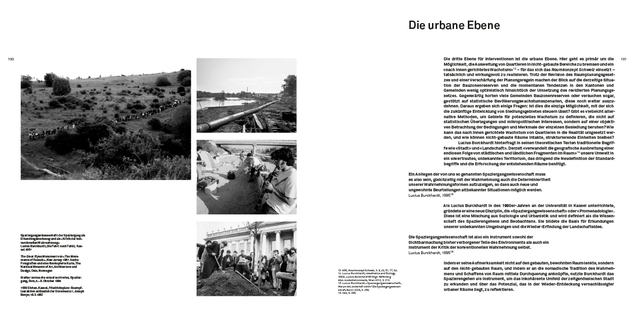 Sechzig Jahre später ist die Beunruhigung gegenüber der wachsenden Zersiedelung nicht verschwunden und Einfamilienhäuser sowie Siedlungen mit geringer Dichte bedrängen die Schweizer Landschaft ungebremst. In freier Anspielung auf das Buch von 1955 schlägt achtung: die Landschaft eine neue, radikale Sichtweise vor. Indem man sich auf die zentrale Rolle der Landschaft – Land, Landschaft und das gesamte unbebaute Gebiet – als Heilmittel gegen die aktuellen städtischen Bedingungen zurückbesinnt, ermöglicht der Blick auf die unbebauten Flächen der Schweiz die Entwicklung von alternativen Strategien und Zukunftsvisionen.