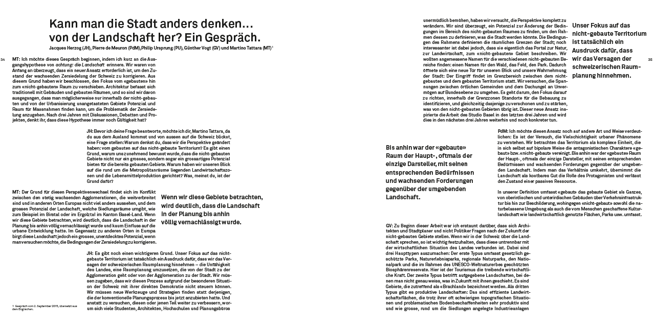 Die Publikation enthält einen gemeinschaftlich verfassten Text von Jacques Herzog, Pierre de Meuron, Lisa Euler, Metaxia Markaki, Martino Tattara und Charlotte von Moos, ein Interview mit Jacques Herzog, Pierre de Meuron, Philip Ursprung und Günther Vogt sowie eine Auswahl jüngster Studentenarbeiten des ETH Studio Basel.