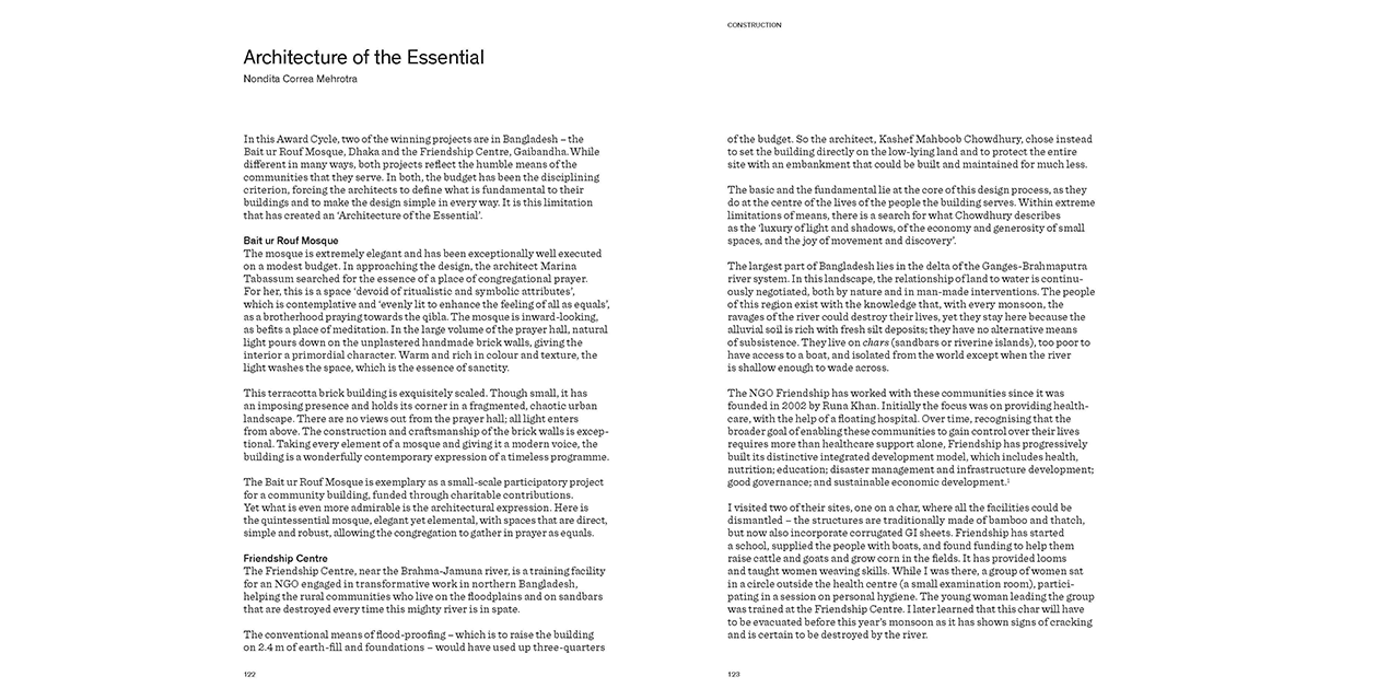 One guiding principle of this cycle of the Aga Khan Award for Architecture is the importance of plurality. Since its inception the Award has aimed to be inclusive and to embrace the engagement of a diverse group of users. But equally, it has sought projects that explore a plurality of methods and architectures in achieving that goal.