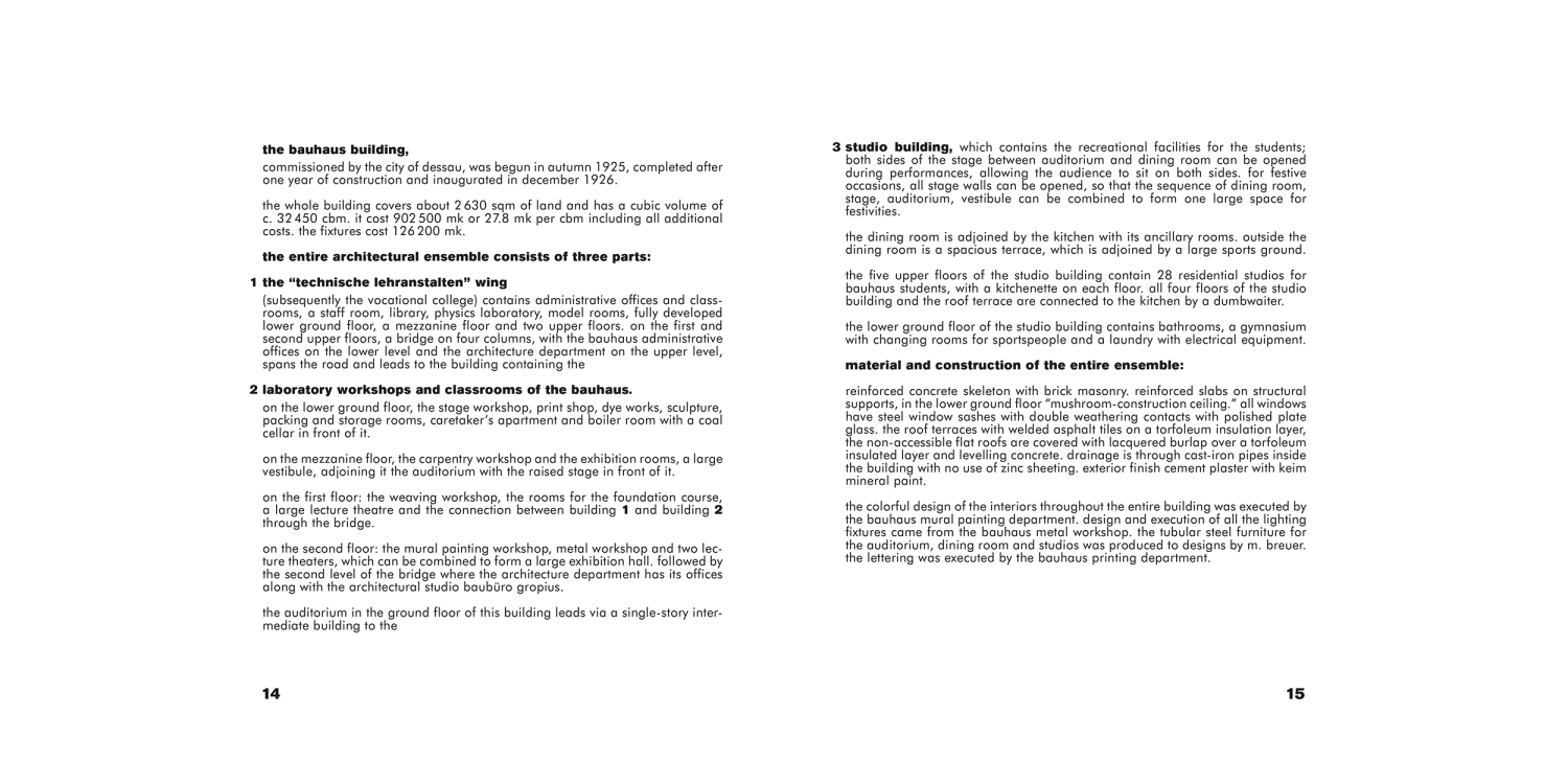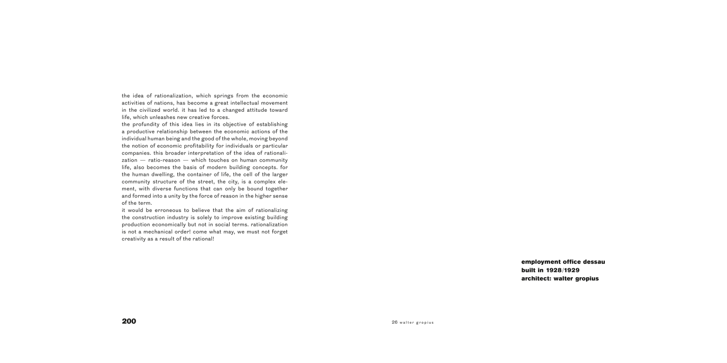 In his third and last contribution within the Bauhausbücher series, the founder and long-standing director of the Bauhaus, Walter Gropius, gives a comprehensive overview of the Bauhaus in Dessau. In addition to a brief outline of the origins and development of the school, Gropius presents the architectural design of the new Bauhaus building and the associated Masters’ Houses with the help of photographic documentary evidence and planning sketches. In the book, he traces the technical planning development with extreme precision and provides an insight into the design practice of the “Bauhäusler.