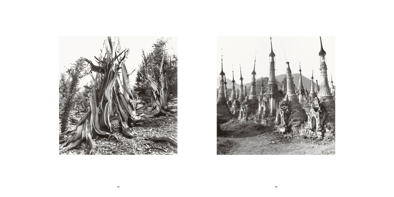 Seit über dreissig Jahren fotografiert Klaus Merkel Bäume, Bauten und Steine, die er zu Doppelbildern paart. Er zeigt erstaunliche Übereinstimmungen zwischen belebten und unbelebten, zwischen natürlichen und gestalteten Erscheinungsformen. Wie im Album der Steine bei der Gegenüberstellung des Figuren- und Fialenwalds des Mailänder Doms mit den Sandsteinsäulen des Bryce Canyons faszinierende Verwandtschaften sichtbar werden, zeigen sich in «Bäume wie Steine» spannende Korrespondenzen zwischen Naturform und Kunstwerk, etwa zwischen den jahrtausendealten Grannenkiefern im amerikanischen Great-Basin-Nationalpark und den verfallenden Stupa-Tempeln in Birma.
