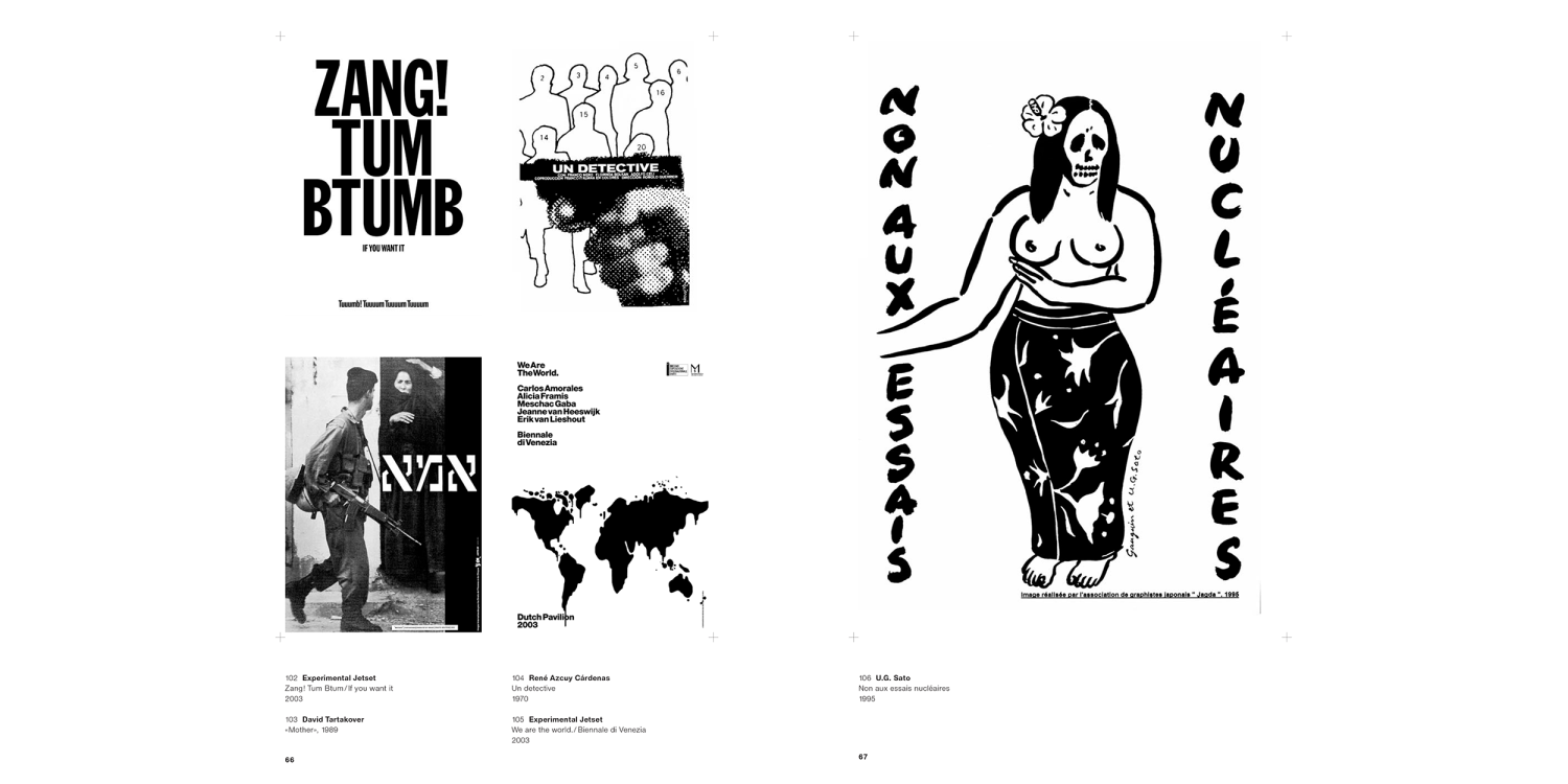 While it is commonly assumed that the graphic design world is brightly colored, this compilation of international posters is out to prove that there is an advantage to be had in working without color. Morphological investigation of the Poster Collection’s stock has brought to light a surprising variety of approaches where the creative will to exploit the color of the paper and the black of the ink alone is the driving force behind a poster's succinct statement. Typical examples come from designers like AG Fronzoni, Werner Jeker, James Victore or Büro Destruct. These works, dating from the last forty years, range from “coolness” to modernist ascetism, from the political manifesto to poetic abstraction.