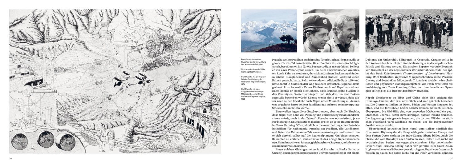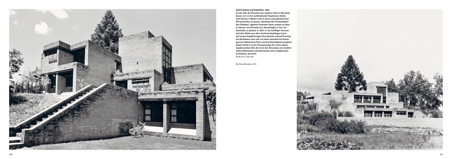 Essays von Manjushree Thapa und Natalie Lettner, das Nachwort von Michael Sorkin sowie fotografische Dokumentationen von Iwan Baan und Hertha Hurnaus führen neben Portfolios von Pruschas Projekten durch sein eigenwilliges Werk und bewegtes Leben.