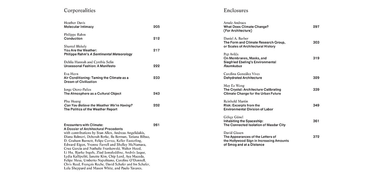 Climates: Architecture and the Planetary Imaginary brings together discussions and projects at the intersection of architecture and climate change. Comprehensive essays consider cultural values ascribed to climate and ask how climate influences our conception of what architecture is and does.