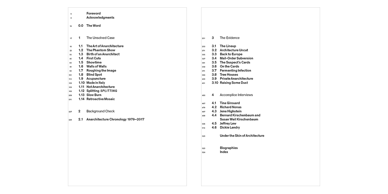 This publication features unpublished archival evidence; The dossier is subjected to ever deeper forensic analysis – cutting into both the concepts and the cuts to see what the elusive, mysterious, seductive, yet viral word Anarchitecture offers us today.