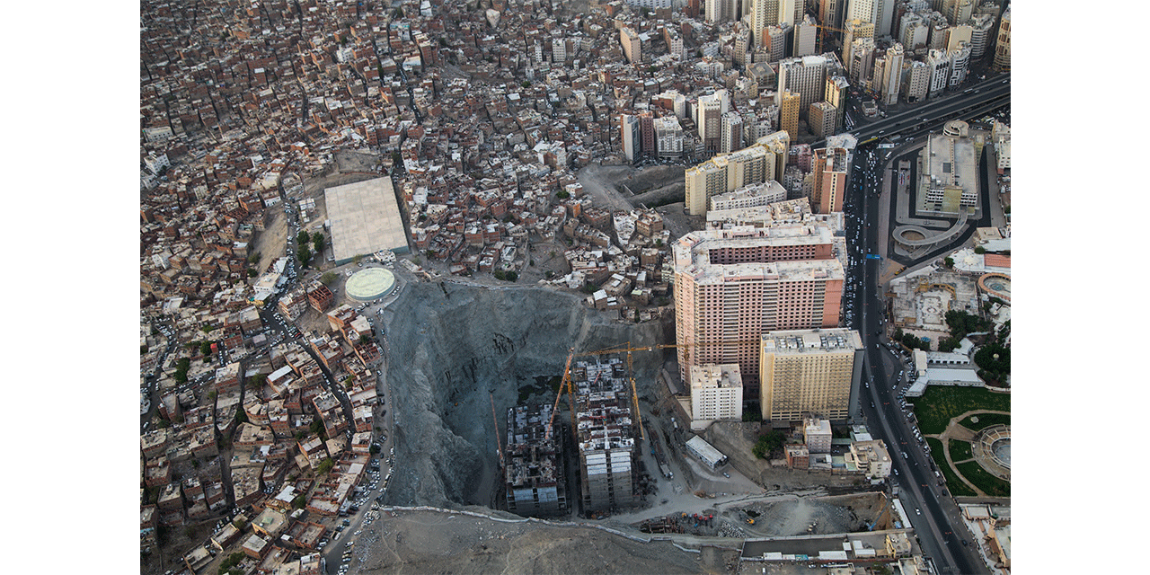 “Saudi artist Ahmed Mater captures the grittier side of the holy city – the migrant workers, the tireless construction and the eye-opening sprawl”