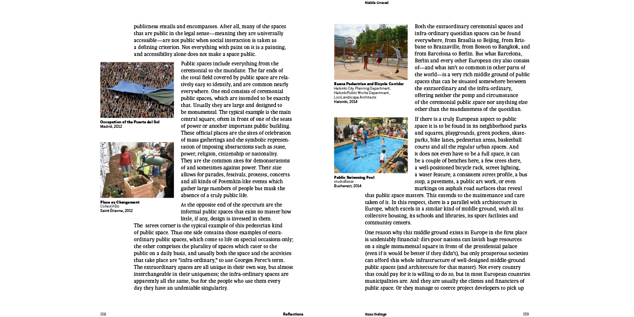 Selected projects of diverse scales illustrate the wide-ranging reflections and demonstrate the impact of public spaces on residents of urban environments. In addition, the book features a historic overview of European communal spaces as well as observations by international experts and authors.