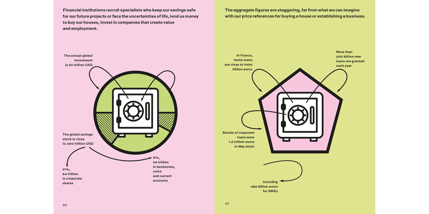 Bad news about climate change, shrinking resources, global health crises, species extinction and growing inequalities cause consternation and insecurity for many people, especially since the Covid-19 pandemic. This book explains in simple but precise terms, aided by Ruedi Baur’s concise illustrations, what “finance” is, and how its most innovative form, sustainable finance, can reconcile the well-being of mankind with the capacities of our planet.