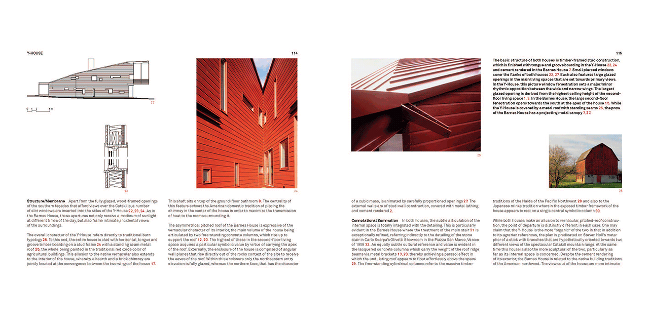 The buildings are compared in terms of their hierarchical spatial order, circulation structure and referential details. The analyses are organized so as to show what is similar and different between two paired types, thus revealing how modern tradition has been diversely inflected.