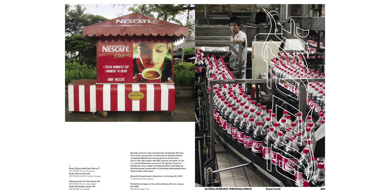 Die Publikation stellt dar, wie sich die globalisierte Welt seit 1970 im Design zeigt und wie Design dieser Welt dient. Dabei wird von einem Designbegriff ausgegangen, der Architektur, Grafik-, Medien-, Mode-, Produkt- und Industriedesign genauso umfasst wie das Design von Lebenswelten oder Produktionsprozessen. Die Schwerpunkte sind die globalen Vernetzungen in den Bereichen Kommunikation, Produktion, Handel, Kapital und Mobilität. Veranschaulicht werden die speziellen Phänomene der Globalisierung durch Filme, Produkte, Kleider, Bilder und Modelle von namhaften Künstlern wie Armin Linke, Fischli Weiss, Didier Faustino oder Thomas Demand. Neben dem Container, einem Sinnbild der Globalisierung, sind der historische und der gegenwärtige Kulturtransfer, die Darstellung der Globalisierung im Verhältnis zum Regionalismus sowie globale Trends Thema der Publikation.