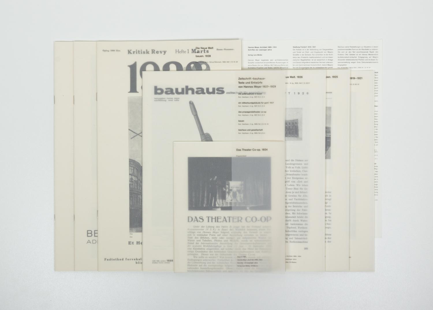 Hannes Meyer begleitete sein architektonisches Schaffen wiederholt mit schriftlichen Äusserungen. In die Zeit von 1919 bis 1927 fällt eine Reihe von Architekturprojekten und Texten mit ausgesprochen programmatischem Charakter. Meyers internationale Reputation und seine Berufung an das Bauhaus Dessau im Jahr 1927 sind im wesentlichen das Ergebnis dieser manifestartigen Texte. Aufgrund ihres theoretischen Gehalts sind sie einzigartige Zeitdokumente und bis heute von Interesse.