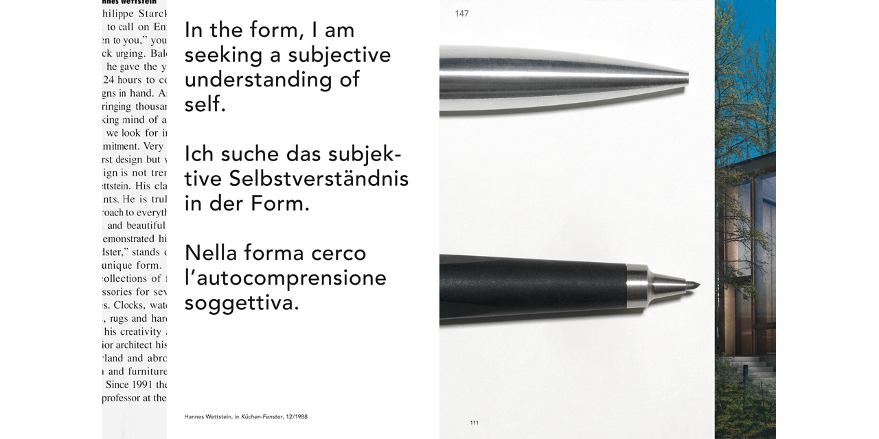We sit on them, write with them, ride them, listen to music through them, and live inside them. The furniture, product, and interior designs of Swiss designer Hannes Wettstein, who died in 2008, have left their mark on everyday life and shaped contemporary conceptions of design—in the form of a pen by the brand Lamy, a watch by Nomos, or as interiors for the Hotel Grand Hyatt in Berlin. Hannes Wettstein Seeking Archetypes documents his life’s work for the first time in monograph form. The volume features images from the world of this exceptional designer—works, sketches, and personal objects. Their diversity reveals the essence of his creative achievement. A comprehensive catalogue raisonné provides a complete overview of Wettstein’s works. Supplemented by quotations from Wettstein, anecdotes from his life, essays, as well as statements by personalities from the worlds of design and architecture, this monograph provides a multifaceted portrait of an extraordinary designer.