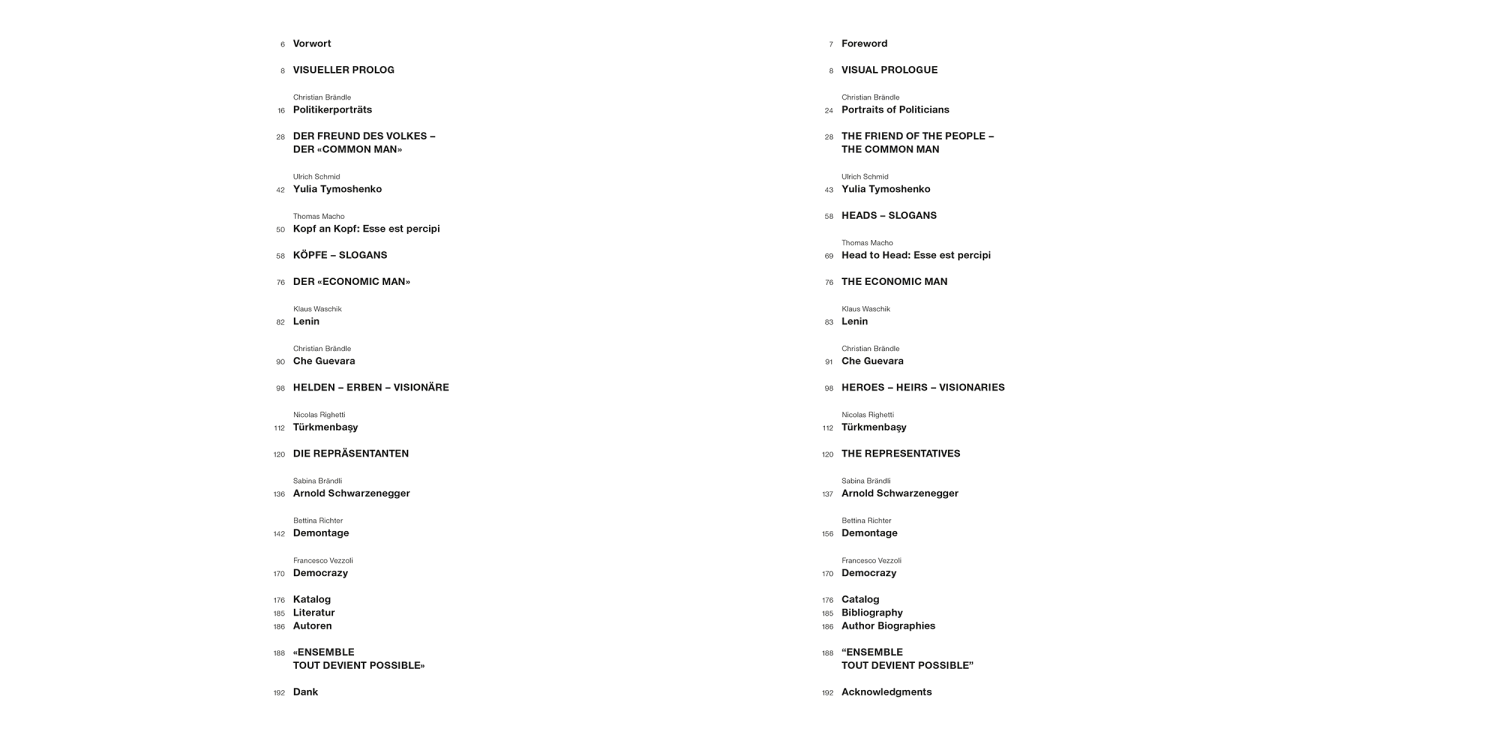 Politicians are omnipresent in our society. How they present themselves depends on historical context and the prevailing form of government and cultural environment. Vital components of political work are image building, political advertising, election campaigns, and self-representation, but also the tearing down of one’s opponent. The exchange between politicians and the people is marked by a complex disparity. While politicians seek to rally broad sectors of the population behind their programs, they only engage sporadically in a genuine exchange with individuals. This publication illuminates historical roots, epoch-making election campaigns, recurrent patterns in political public relations, and defining figures such as Lenin, Che Guevara, Arnold Schwarzenegger, and Yulia Tymoshenko.