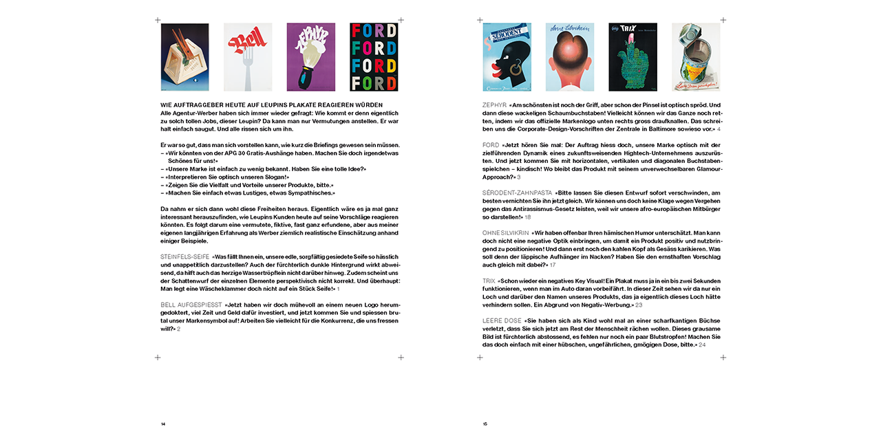 Marking the centenary of his birth, this volume honors the iconic Swiss poster designer Herbert Leupin (1916 –1999). Primarily conceiving posters for consumer goods, Leupin created advertising for products as diverse as the soft drink Pepita, charcuterie from Grossmetzgerei Bell, and Roth-Händle cigarettes. He helped these and many other companies develop their own brand identity and a recognizable presence in public space. In doing so, he struck the right balance between old-school artist’s posters and a methodology for a successful publicity strategy – thus bridging the increasingly wide divide between art, graphic design, and advertising.