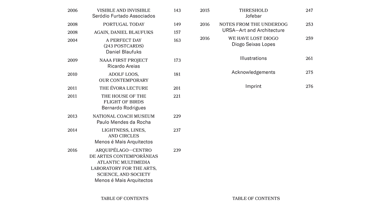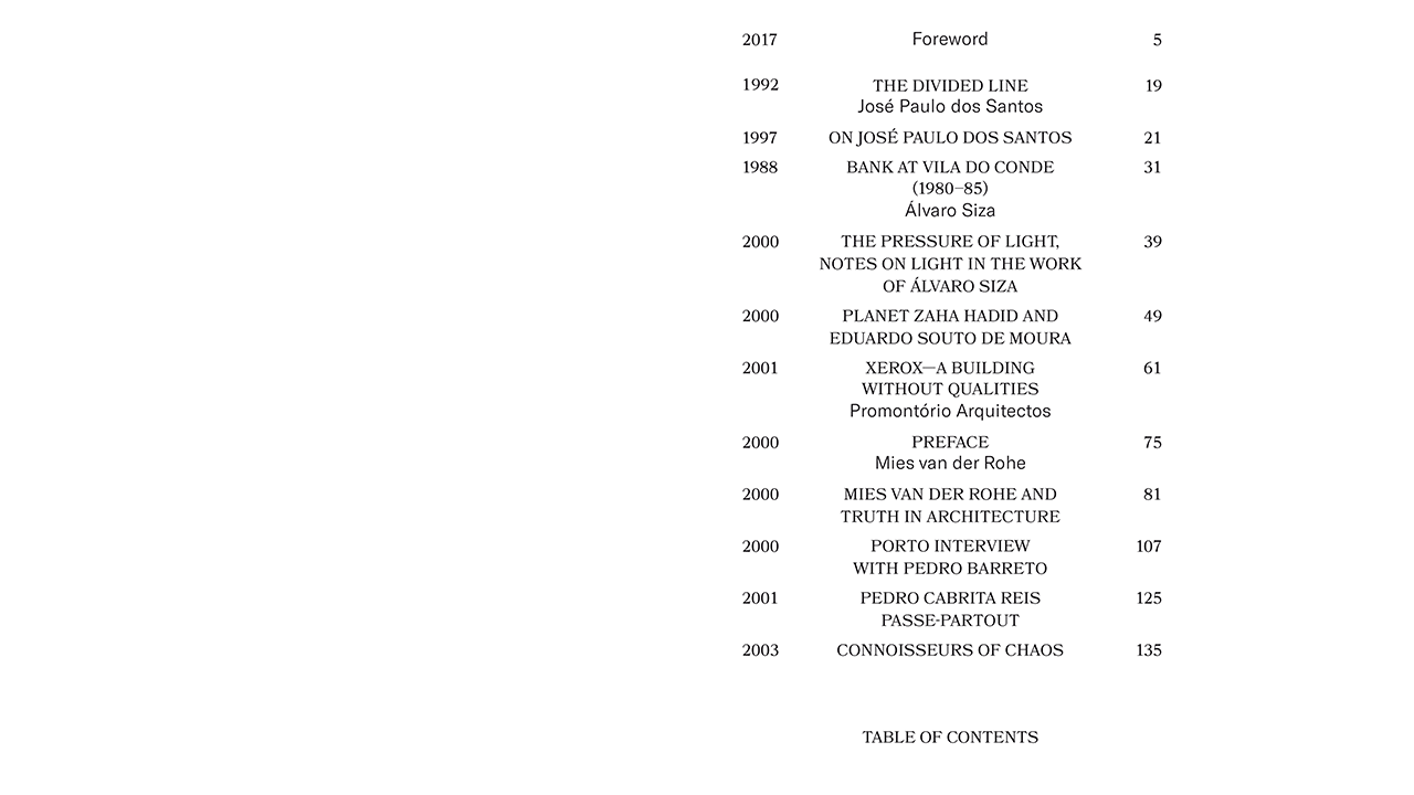 Through this historical and at the same time very personal context, Safran places Portuguese architecture in an unprecedented perspective for the international readership, revealing the preservation of longstanding traditions as well as the increasing desire of an emerging generation that has, to an extent, overcome those traditions.