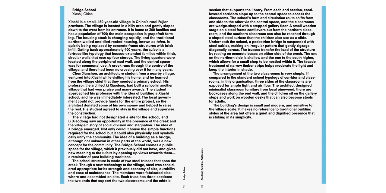 The Aga Khan Award for Architecture was established by His Highness the Aga Khan in 1977 to identify and encourage excellence in architecture and other forms of intervention in the built environment of societies with Muslim presence. The award is given every three years and recognizes all types of building projects that affect today’s built environment. Smaller projects are given equal consideration as large-scale buildings. The book presents the shortlist of nineteen projects, including the five award recipients. In their variety across culturally diverse areas of the globe, what these projects have in common is a commitment to design excellence despite constraints of budget, resources, climate, technology, or politics.