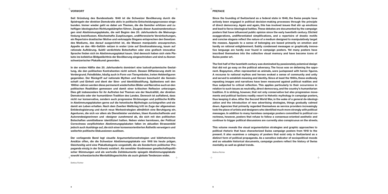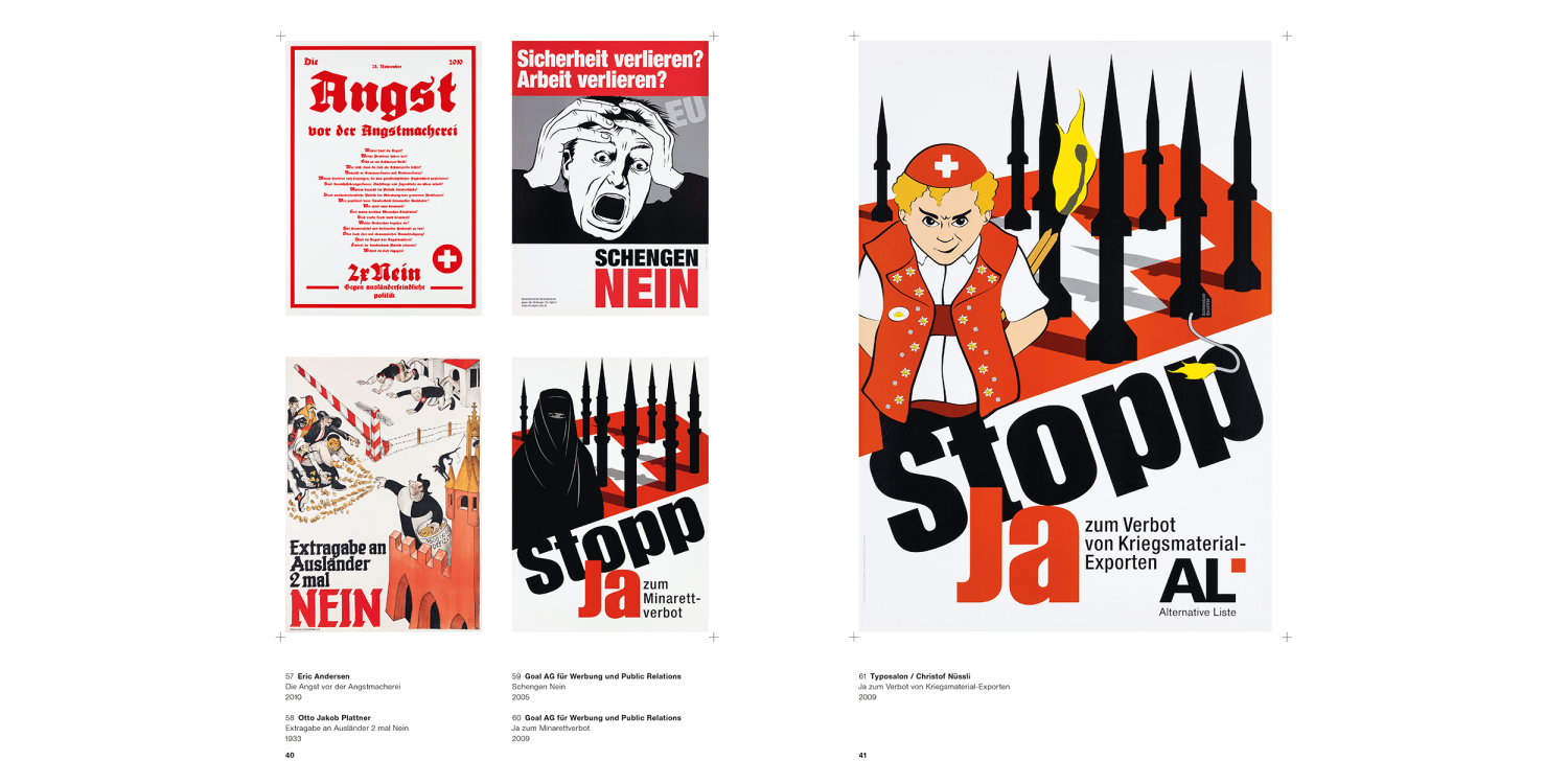 Ja! Nein! Yes! No! Swiss Posters for Democracy reveals the visual argumentation strategies and rhetorical approaches that have shaped the Swiss campaign poster from 1918 to the present. Clichéd exaggerations, undifferentiated simplifications, a repertoire of drastic motifs and abridged slogans correspond to the laws of the medium, which is oriented towards a manipulative appeal to the masses. Appeals to a sense of unity focus primarily on emotionalization rather than rational enlightenment. Subtly condensed messages or graphically innovative language are hardly to be found in campaign posters. And yet many renowned designers created works that have inscribed themselves in the collective visual memory of the Swiss population and have become icons of Swiss poster design.