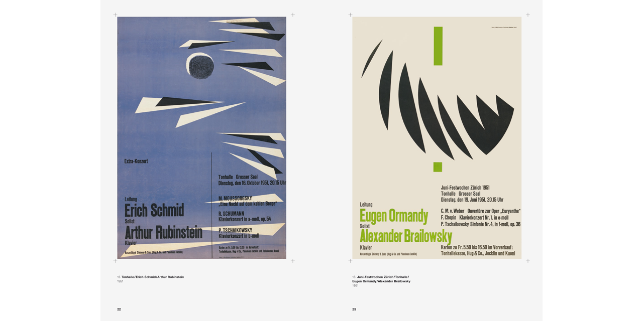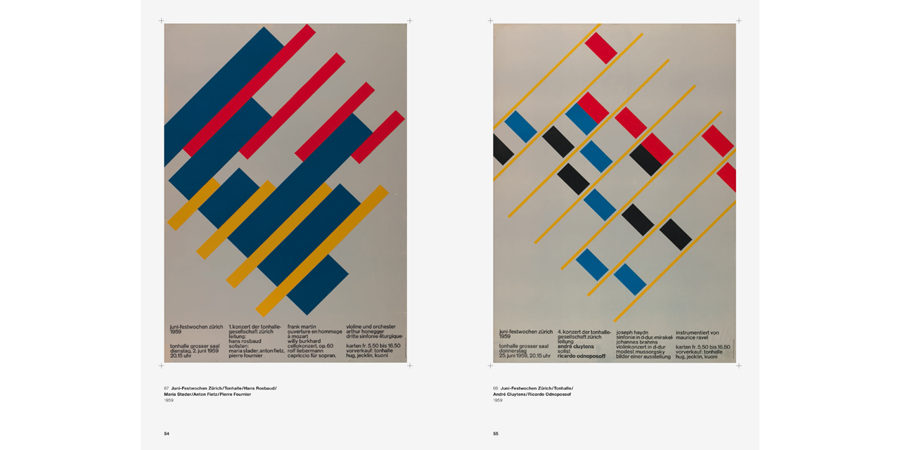 Josef Müller-Brockmann’s graphics left a lasting mark on Swiss visual communication from the 1950s onward. His posters demonstrate how a sober, formally reduced language works best for conveying a universal, timeless message. Poster campaigns for longtime clients such as the Tonhalle concert hall in Zürich or the Automobile Club of Switzerland follow strict functional criteria–and yet exhibit a variety of design solutions and exciting, dynamic compositions.