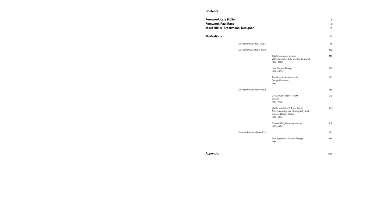 This in-depth illustrated essay traces the work of one of the leading exponents of Swiss Graphic Design in the 1950s and 1960s. Josef Müller-Brockmann’s posters are world-renowned for their ability to convey information with great visual tension, a sense of drama and an extreme economoy of means. He created a body of work in which timeless principles of visual communication are inscribed. Alongside his iconic posters, the book showcases logotypes, corporate identities, exhibition designs, and numerous lesser-known works, all presented in chronological order.