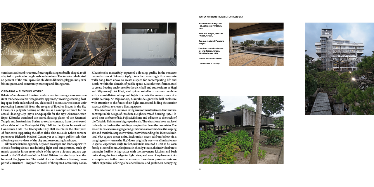 Writings by Kikutake himself, the viewpoints of disciples including Toyō Itō as well essays and analyses provide insights into the methods and modes of practice of the architect, who serves as a vital inspiration for Japanese architectural practice today.