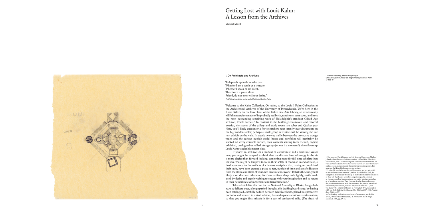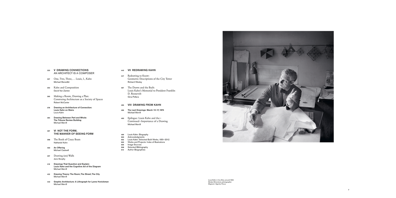 - "a lavish, 500-plus-page book... both a deep examination of Kahn’s creative process, as told through the medium of the hand drawing, as well as a revealing portrait of the man behind those buildings and illustrations."