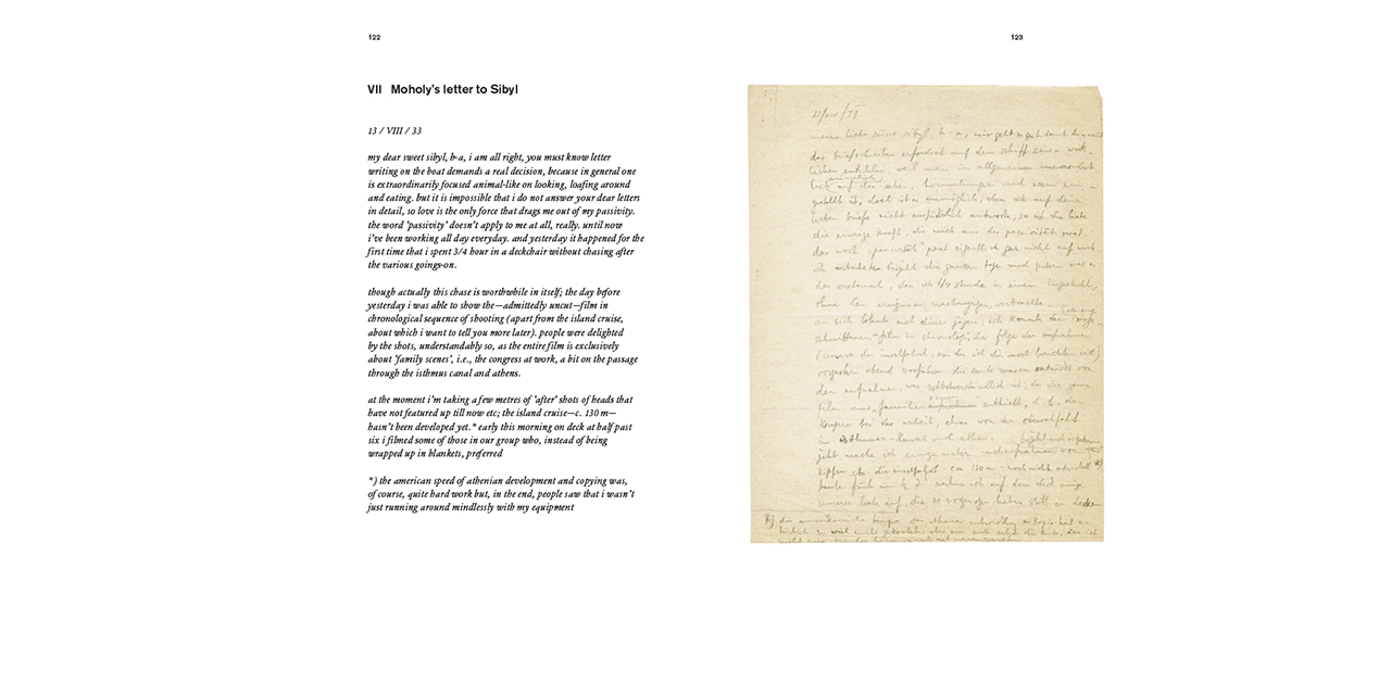 In addition the colourful and ironic six-page letter Moholy-Nagy wrote to his future wife Sibyl describing the "motley crew" and the barely-seaworthy "yacht" that brought them close to the brink of disaster, reveals exclusive insights. This document is being published in its entirety for the first time.