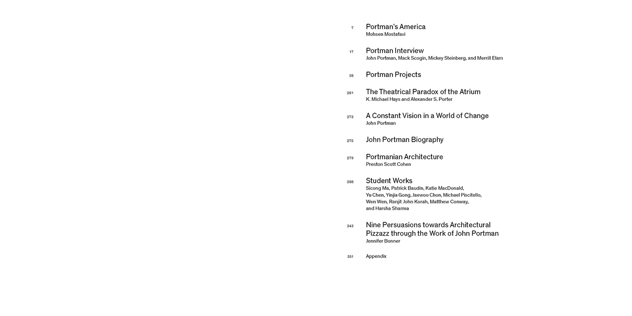 Portman’s own voice and ideas complement the contributions of others, including new photographs by Iwan Baan, to present a more complex and nuanced reading of both the architect and his architecture. Finally, the repertoire of Portman’s buildings is analyzed in meticulous detail and used by a group of students from the Harvard Graduate School of Design as a catalyst for a host of divergent and new architectural speculations.