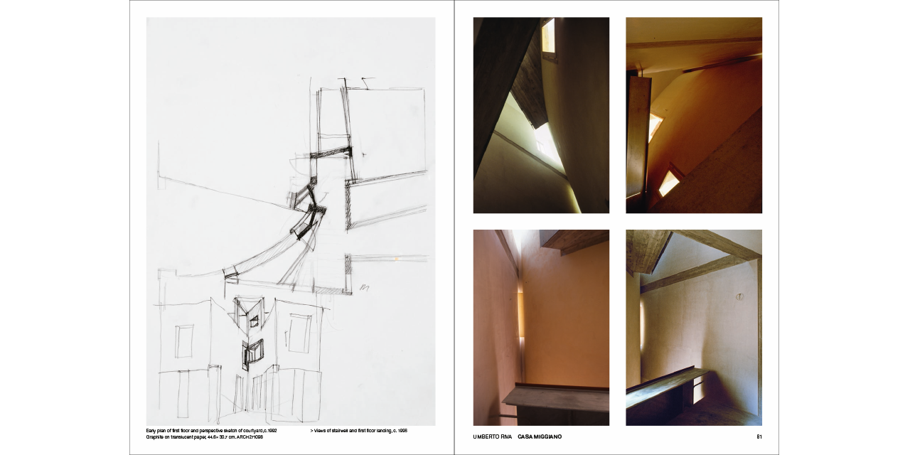 Through a personal narrative that pulls from building visits and ongoing conversations, Mirko Zardini—curator of an accompanying exhibition at the Canadian Centre for Architecture—interprets each architect’s motivations and preoccupations and finds unlikely resonance in their complementary approaches. The two architects are brought together at the book’s centre in photographs of the exhibition, for which they were each asked to create an exhibition design evoking the atmosphere of their domestic projects. The book also contains extensive visual material, including rich, rarely published drawings by Riva and in-progress documentation of Jain’s most recent projects and research.