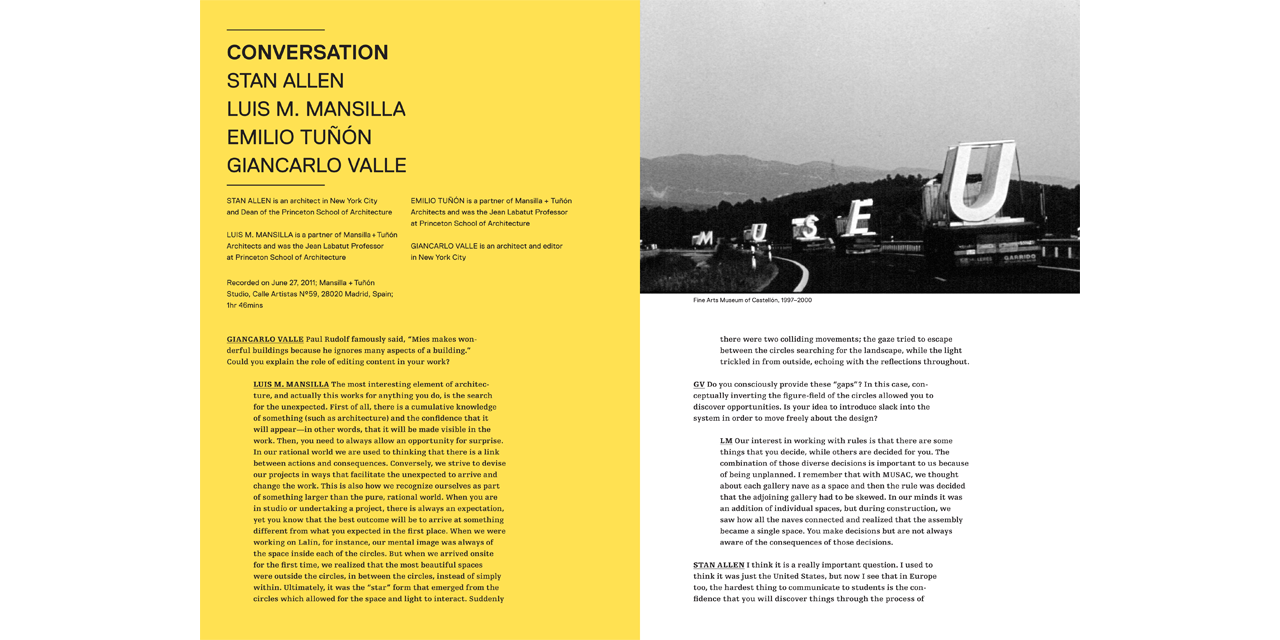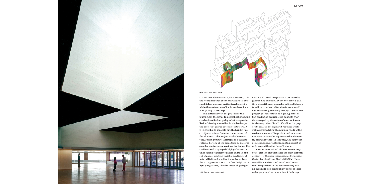 Luis M. Mansilla and Emilio Tuñón are internationally recognized for their intellectual contributions and influential designs and buildings. In 2007, they received the prestigious Mies van der Rohe Prize for their Museum of Contemporary Art in Castilla y León (MUSAC) in León, Spain, and in 2003, the Spanish Architecture Award. Their current work includes The Spanish Royal Collections Museum in Madrid, Lalín Town Hall, and the International Convention Center for the city of Madrid. In February of this year, as this book was nearing completion, Luis M. Mansilla passed away, making this one of the last records of his work and ideas.