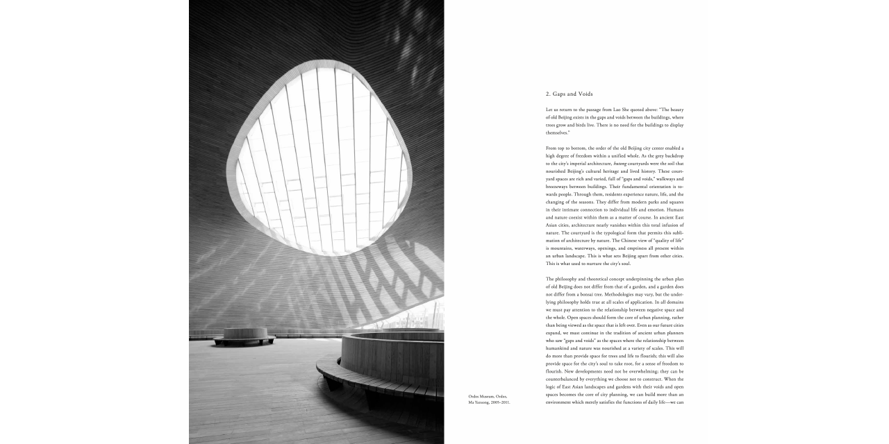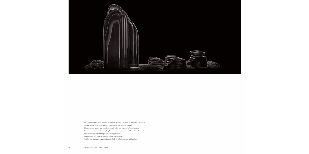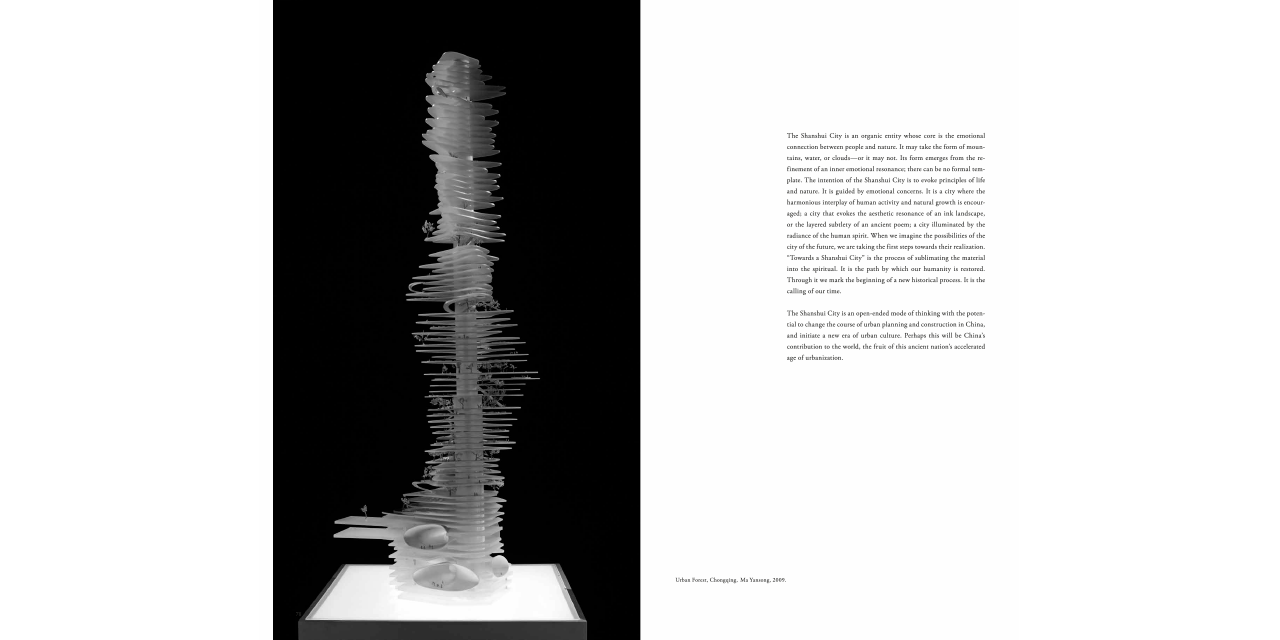 Shanshui City is the latest book from MAD Architects’ founder and principal partner, Ma Yansong. The English edition features art direction from Kenya Hara with essays by key Western and Eastern contributors, such as Hans Ulrich Obrist & Lorenza Baroncelli, and Wang Mingxian. The publishing of Shanshui City coincides with MAD Architects’ 10th founding anniversary. Ma’s poetic, yet precise language details the development and practice of the “Shanshui City” design philosophy, in which “architects should delineate a new ideal for the city of the future, to gradually construct an urban environment that embodies both the convenience of the modern city and the ancient Eastern affinity for the natural world.” Extending contact with the natural world, “Shanshui” is an idealized Chinese worldview to seek and integrate spiritual refuge in nature among the everyday life of humanity. “Shanshui City” is not simply an eco-city, or a garden-city, nor does it imply modeling the city’s architecture on natural forms such as mountains; rather, it represents humanity’s affinity for the natural world and our quest for inner fulfillment, as expressed in philosophies of the East.