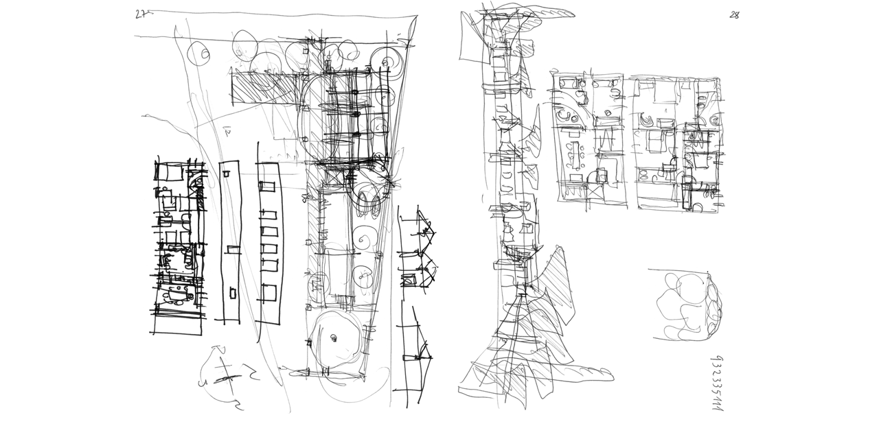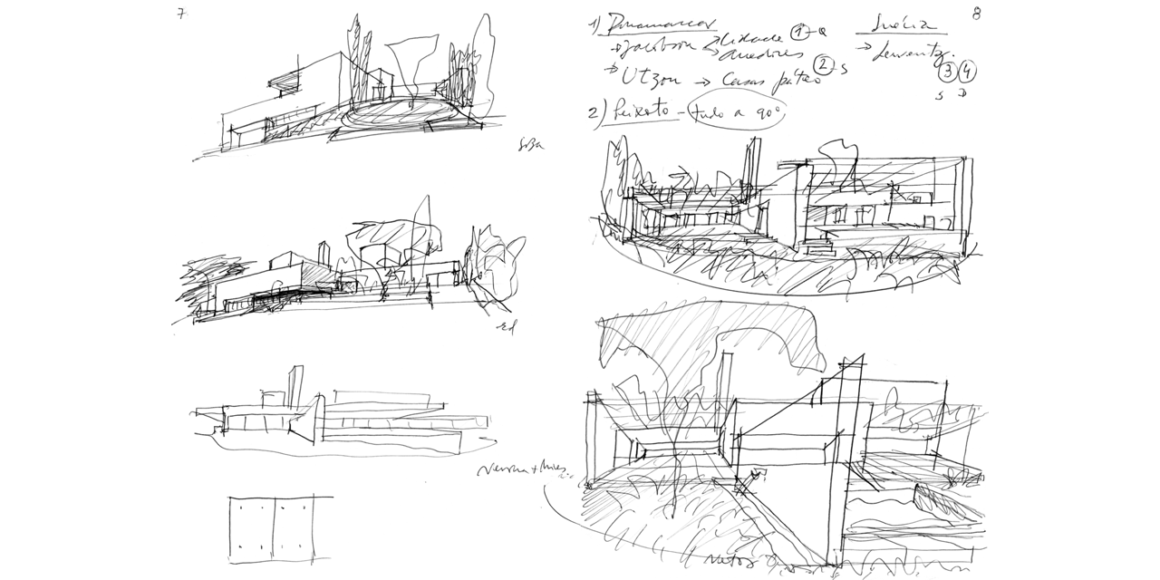 Sketchbook No. 76 is the reproduction of a sketchbook of the renowned Portuguese architect and Pritzker Prize laureate, Eduardo Souto de Moura. The sketchbook was in use between September 2011 and January 2012 and records first ideas, fleeting sketches, studies, and spontaneous jottings that offer a starting point for every project but also function as a working resource. It illustrates the architectural design process and how developing existing ideas are further developed in different variants.