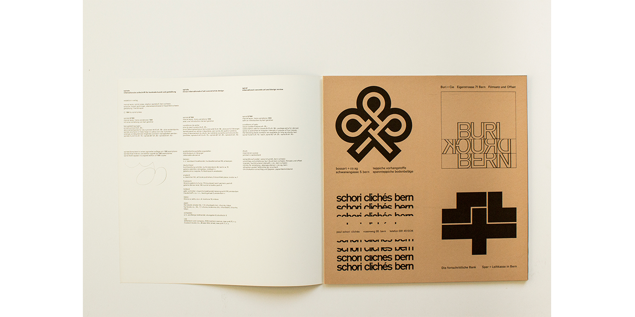 Spirale magazine, published in 9 issues between 1953 and 1964, was a platform for young artists and documented the development of abstract and concrete art and poetry in Europe. spirale set itself apart from other magazines with its original and distinctive look and attitude and is one of the most important testimonies to the development of art in the 1950s.