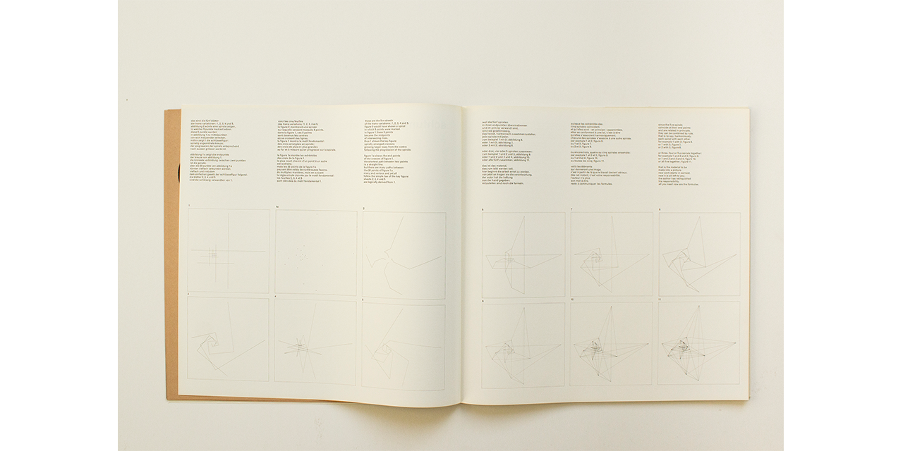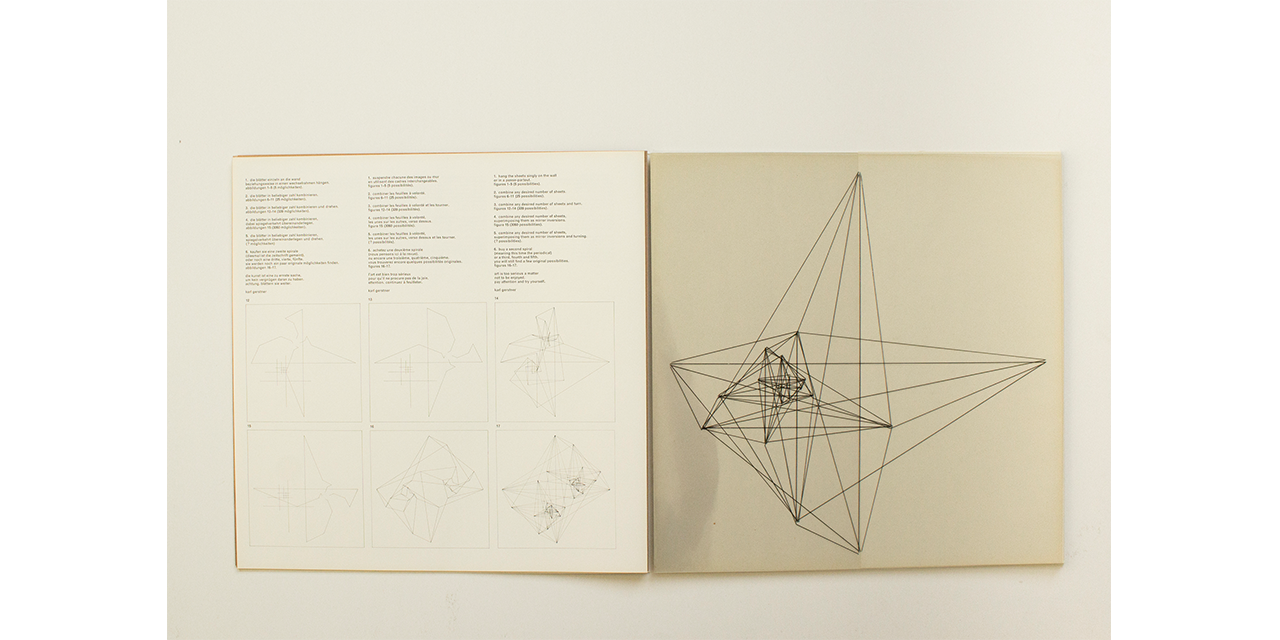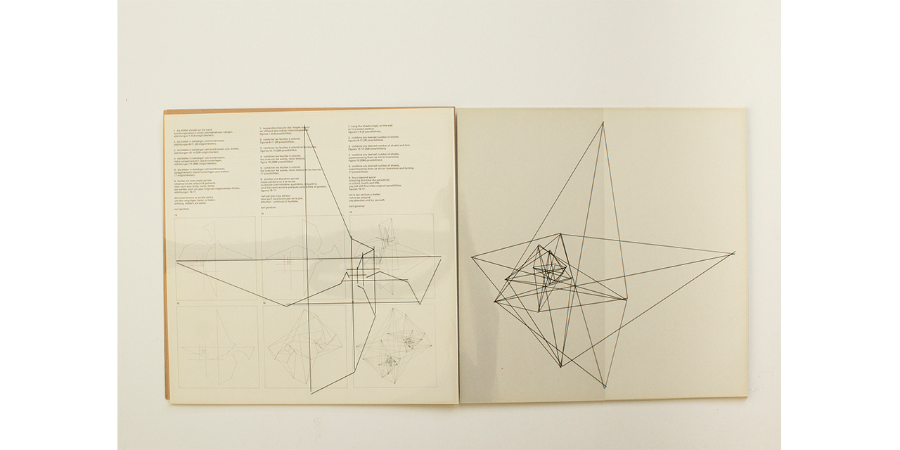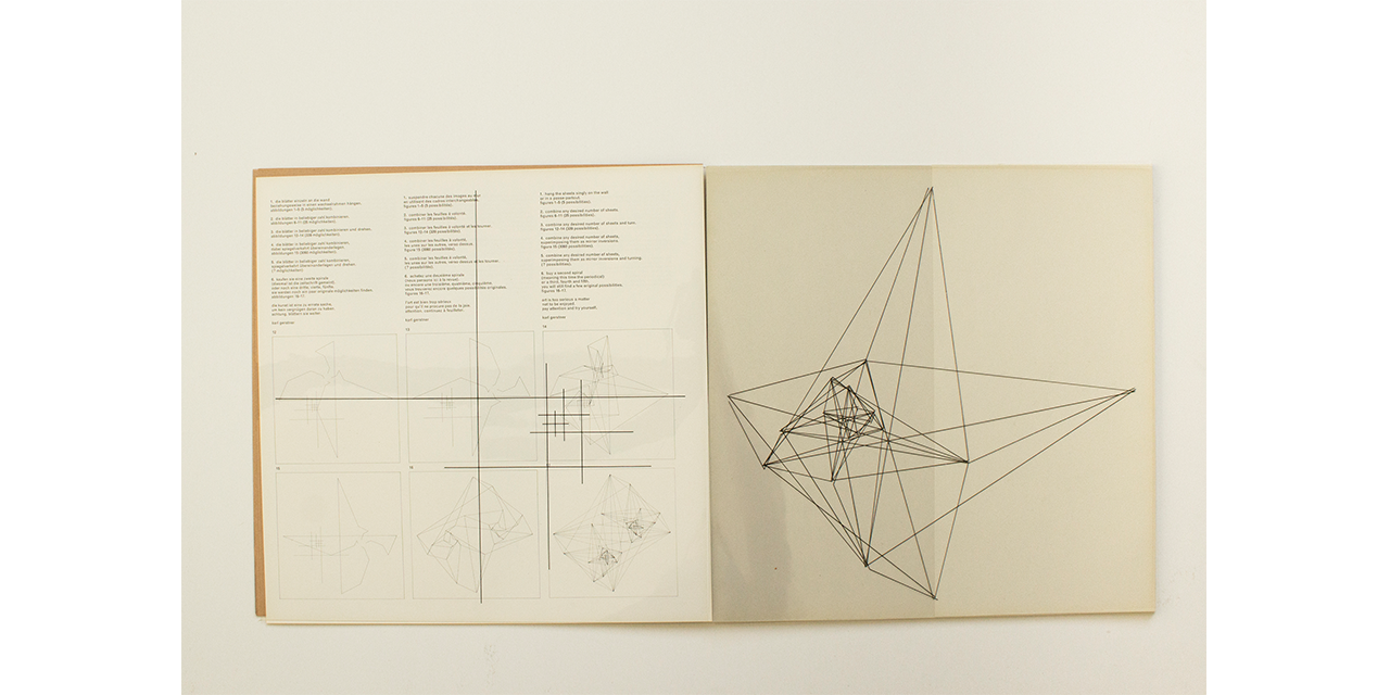 spirale 9 was the last issue in the series. It differs from previous issues and features an artwork by Marcel Wyss, the editor of the magazine. Five linear designs on transparent foil can be combined randomly to create a variety of shapes. spirale 9 is signed by Wyss and comes with an introduction by Karl Gerstner.