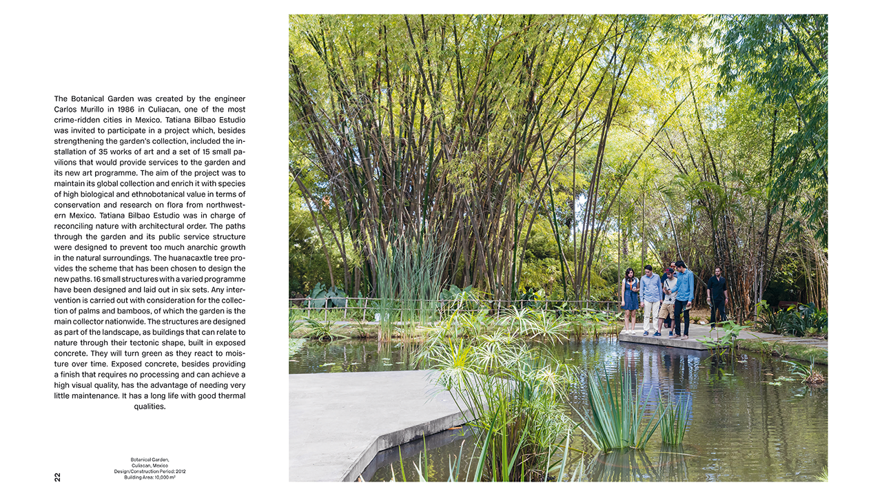 The third volume of the series The Architect’s Studio focuses on Tatiana Bilbao’s exploration of the landscape: from the territory of Mexico over the urban to the interior landscape of the individual building, always taking social conditions into account. This is also demonstrated in Bilbao’s various projects such as the architectural design of a pilgrimage route, a botanical garden in the Mexican main trading center Culiacán, and not least the Light of Line, which is intended to enable women in particular to move more safely in remote districts of the city. In constant collaboration with experts from various disciplines, Bilbao wants to create architecture that has a direct impact on its users.