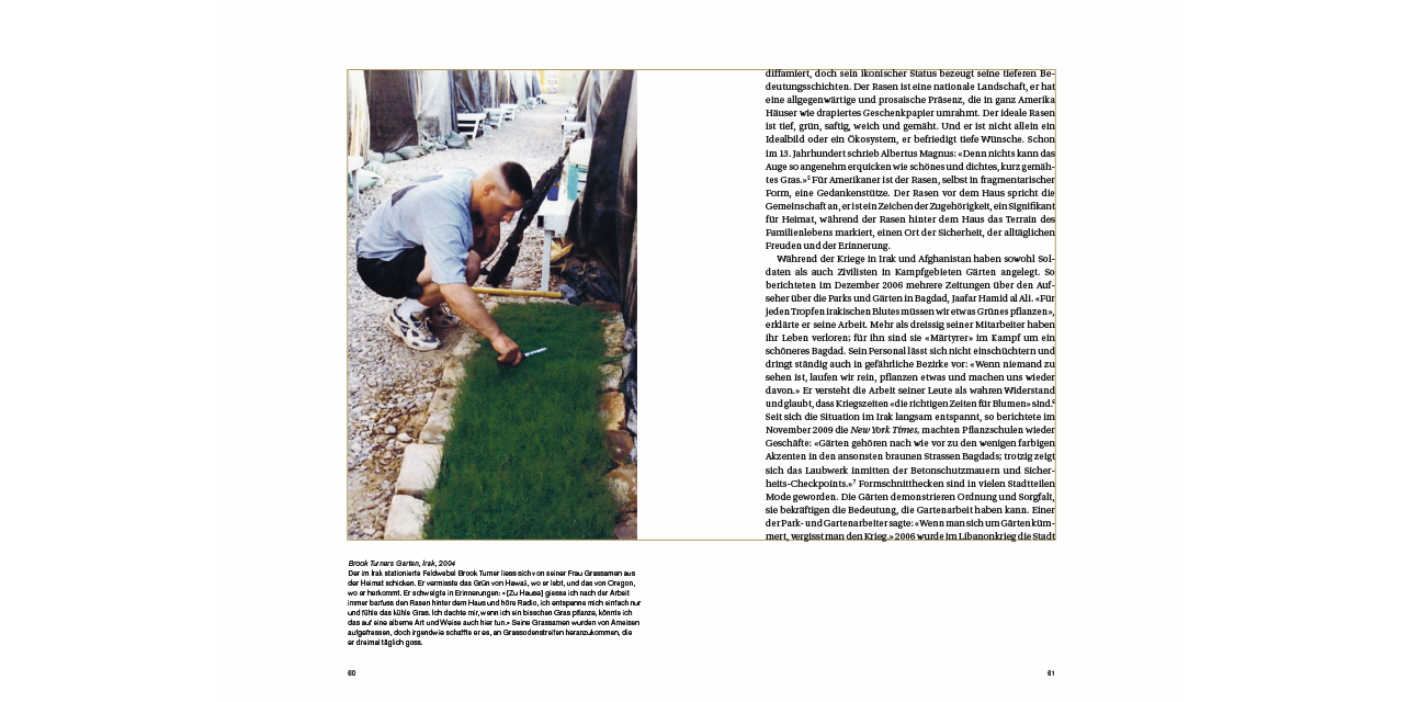 Versuche das Glück im Garten zu finden stellt in acht reich bebilderten Essays «Paradiese» vor, die auf individuellen und kollektiven Handlungen basieren: Gemeinschaftsgärten in Berlin, Kriegsgärten im Irak, Gebetsteppiche von Muslimen und Eruvs – Zäune, die ein jüdisches Wohngebiet umgeben und erlauben, eine Sabbatregel zu umgehen. Weitere Beiträge widmen sich dem vermeintlichen Paradies, dem gutgläubige Kreditnehmer erliegen, oder dem Whole Earth Catalog aus den 1970er Jahren, den man als frühen Vorläufer der Web-Suchmaschinen bezeichnen könnte.