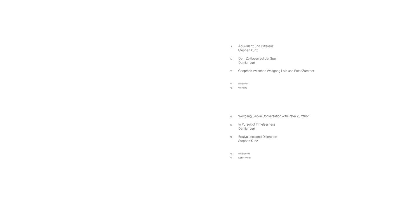 At Bündner Kunstmuseum, Laib realized a large room-sized installation made of thousands of rice mountains. As an important staple food, rice symbolizes vitality and is fundamental for our earthly existence. The process of creating this work of art is revealed in the book and is related to a conversation between Wolfgang Laib and the architect Peter Zumthor. With this book, Wolfgang Laib reveals the spiritual dimension of art and leads us directly to the sources of his poetics.